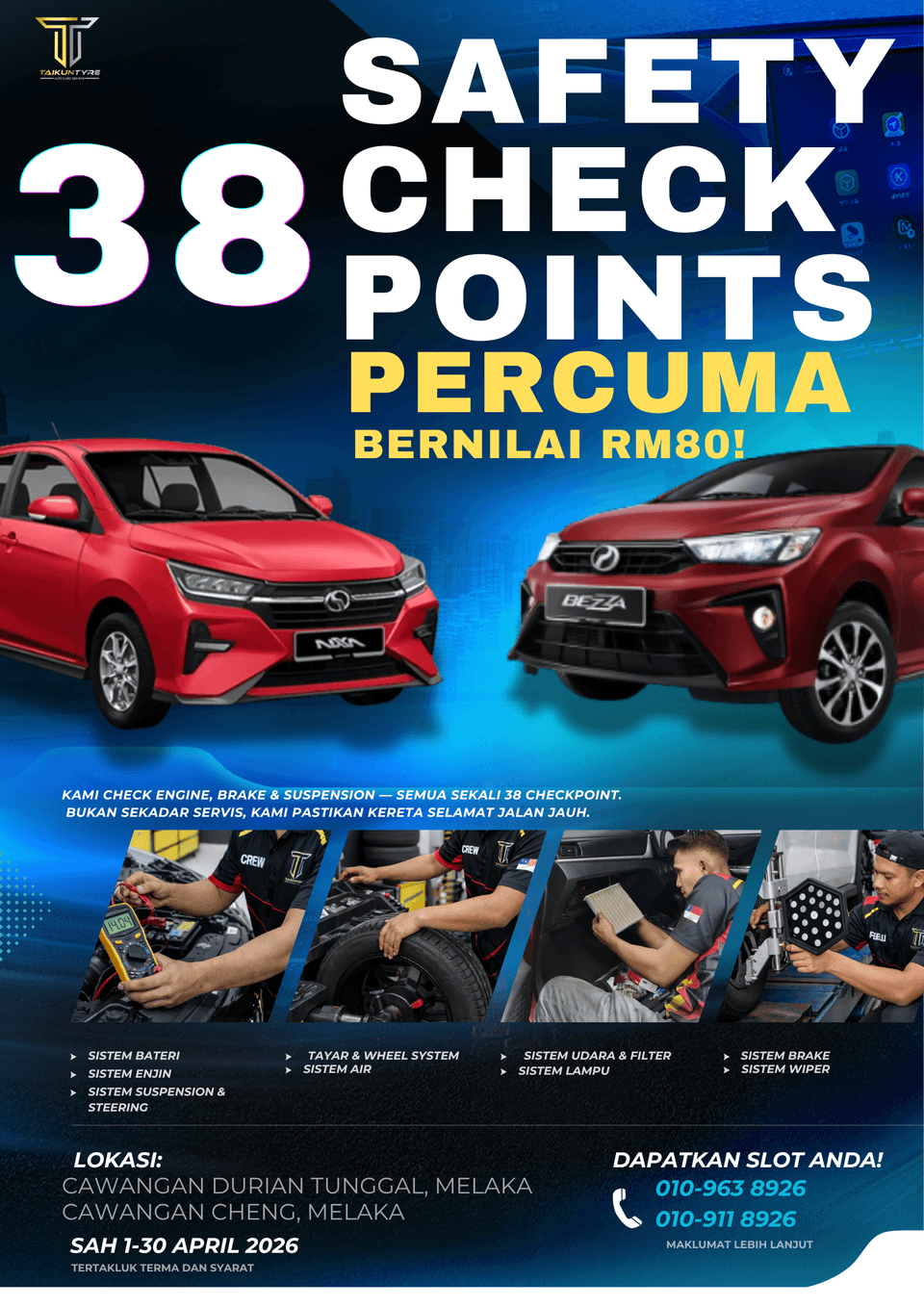 Tak Tahu Nak Periksa Kereta Sebelum Jalan Jauh? Datang Je Ke Taikun — Pemeriksaan 38 Safety Checkpoint PERCUMA